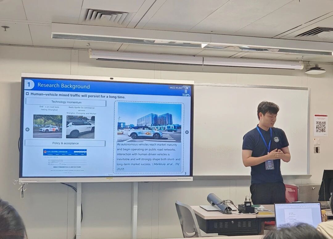 智慧引领交通,数据驱动未来”,2025年同济大学交通学院与香港高校继续携手,共叙学术交流新篇章。9月26日至29日,学院的12名硕士和博士研究生在孙杰老师的带领下,先后前往香港理工大学、香港大学、香港科技大学进行“同港汇智,畅行交通”学术交流活动。同时在参访期间,交流团就香港的公共交通制式与组织模式展开调研,并进行了分享与交流讨论。