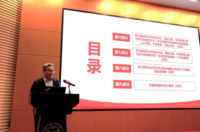 黄灿彬领学10月教职工理论学习相关内容并作师德师风警示教育,详细通报学术不端典型案例与违规违纪事件,剖析案例背后的问题根源,强调教师需坚守职业底线、恪守学术诚信,进一步强化全体教职工的职业规范意识与责任担当,为学院营造风清气正的育人环境筑牢思想根基。