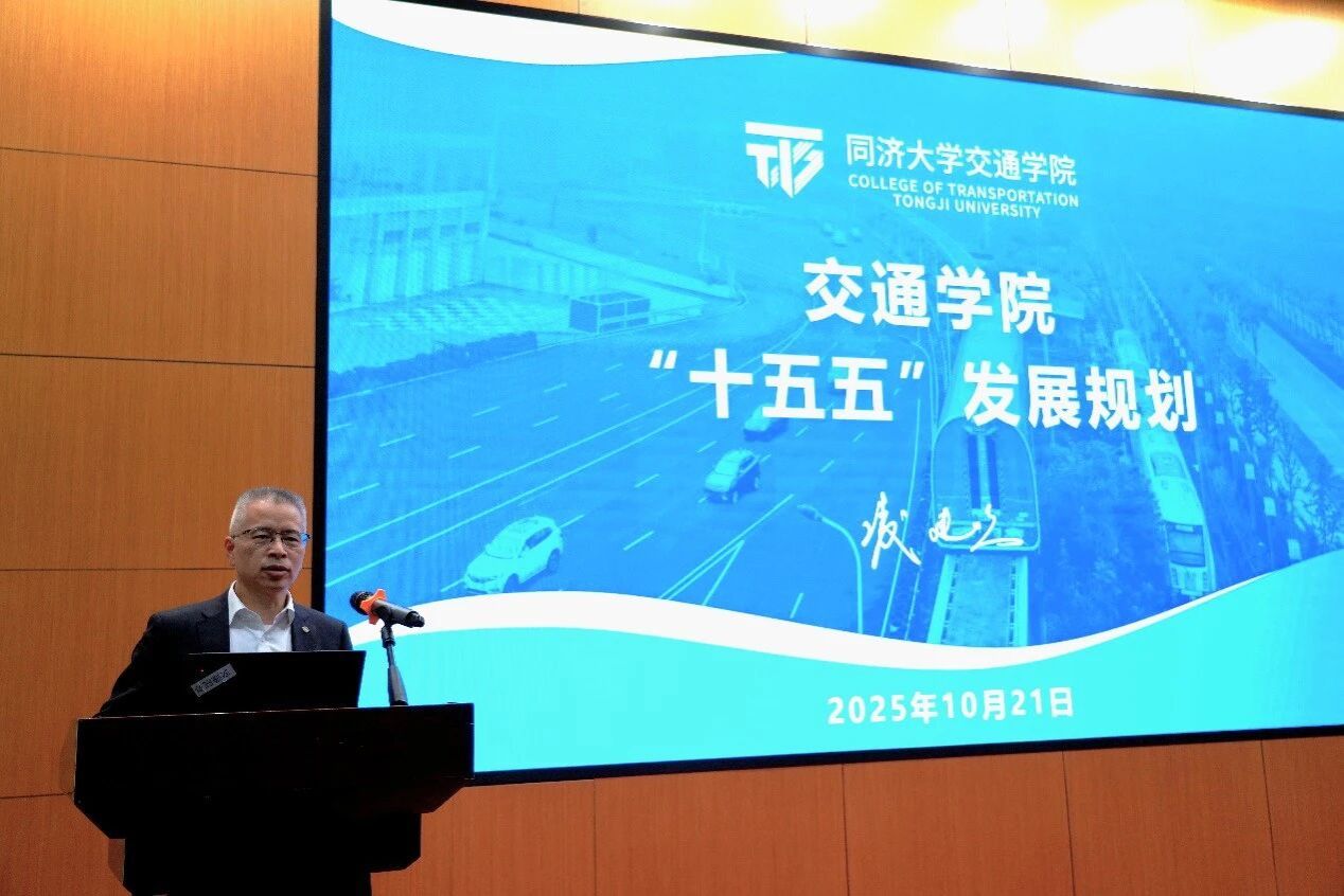 2025年10月21日,交通学院在同心楼224报告厅召开全院大会。会上,院长凌建明作交通学院“十五五”发展规划报告,党委副书记黄灿彬领学10月教职工理论学习相关内容并作师德师风警示教育,党委副书记孙海燕作“同路成长”计划报告。大会由党委书记马万经主持,全体教职工参会。