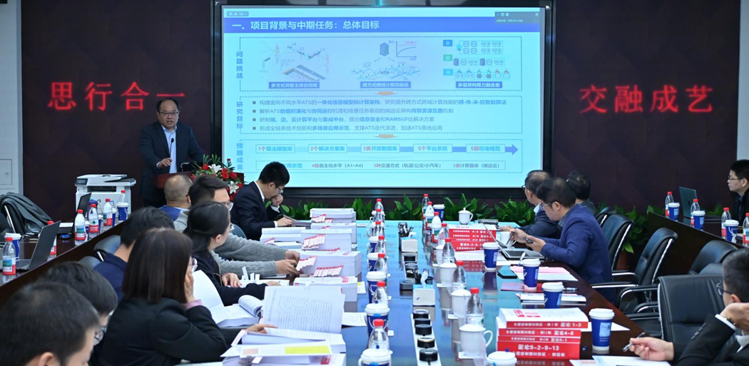 会上,项目负责人孙剑教授代表项目组作项目总体进展汇报。据介绍,项目自2023年12月启动以来,围绕自主式交通系统面临的“三大核心挑战”——多方式异质主体协同难、跨域计算效能低、异构算力融合差,系统构建了端-边-云协同的技术架构体系。在新型计算架构、模型与场景库建设、关键算法研发等方面取得了系列重要进展,全部中期考核指标均已通过第三方测试验证。