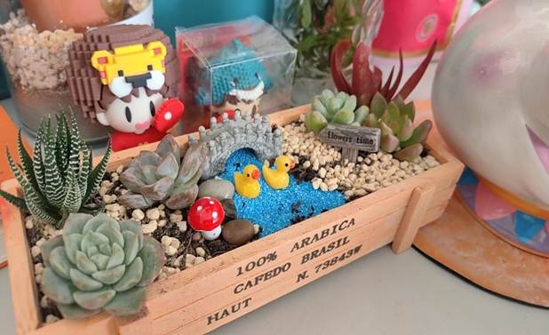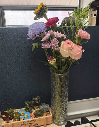 创作过程中,跨院系的老师们打破学科壁垒,不时交流技巧、分享心得。材料学院的老师向电信学院的同事请教多肉配土比例,医学院的老师则分享了鲜花保鲜的小窍门,“干花摆放要注意避开空调出风口,否则容易失水碎裂”、“多肉浇水要遵循‘见干见湿’原则,避免工位窗台积水”。欢声笑语在花香中流转。
