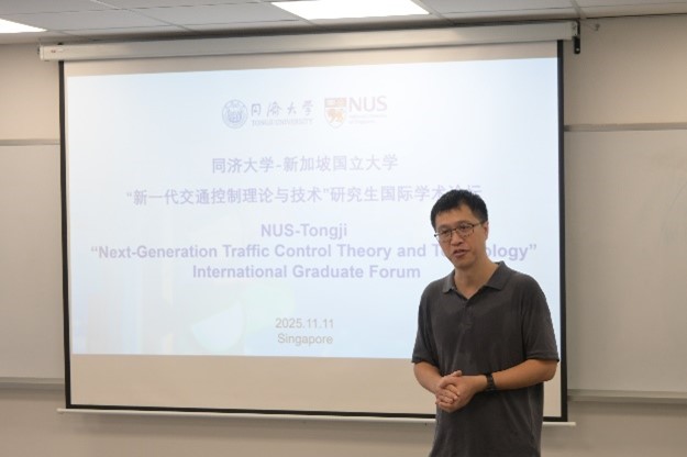 论坛伊始,新加坡国立大学Yang Kaidi助理教授对同济大学师生的到访表示热烈欢迎,并指出此次论坛的召开进一步深化了两校的长期合作,为青年学者提供了高水平的国际交流平台。同济大学杨晓光教授随后回顾了交通学科及交通控制理论的发展历程,强调在数据爆发与智能技术飞速发展的背景下,特别是随着车路联网与协同交通不断普及,既有交通控制系统正面临挑战,新一代交通控制系统迎来新的发展机遇,本次论坛的举行对于推动青年学者在交通控制理论创新研究与技术实践方面具有重要意义。