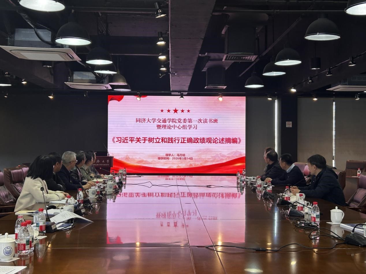 为深入贯彻党中央部署及学校党委工作要求,3月14日,交通学院党委在中法中心C401会议室召开树立和践行正确政绩观学习教育第一次读书班暨党委理论中心组学习,专题学习习近平总书记关于树立和践行正确政绩观的重要论述,统一思想、凝聚共识,为学院“十五五”高质量发展谋篇布局、夯实根基。学院党委书记马万经主持会议并领学,全体领导班子成员参加学习。