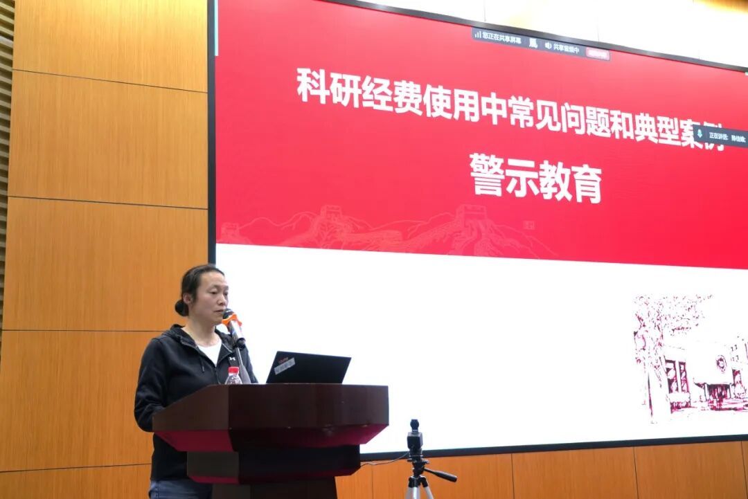党委副书记周建梅立足学院实际,首先通报了学院党委树立和践行正确政绩观学习教育的开展状况以及校内巡视整改工作的进展,围绕树立和践行正确政绩观学习教育、校内巡视整改、迎接中央巡视等重点工作作进一步部署。随后,围绕4月教职工理论学习指导意见开展专题领学,并作警示教育。在警示教育环节,她结合典型案例,聚焦科研经费使用等关键领域进行了重点提醒,要求教职工严守纪律规矩和制度红线,切实增强廉洁自律意识,筑牢拒腐防变思想防线。