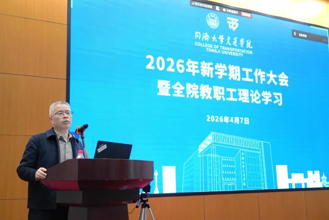 4月7日下午,交通学院2026年新学期工作大会暨全院教职工理论学习在同心楼224报告厅召开。会上,班子成员紧扣学校、学院务虚会精神逐一汇报了学院2026年重点工作思路与举措,党委副书记周建梅围绕4月教职工理论学习指导意见开展专题领学并作警示教育。全院教职工以线上线下方式参会,会议由院长凌建明主持。